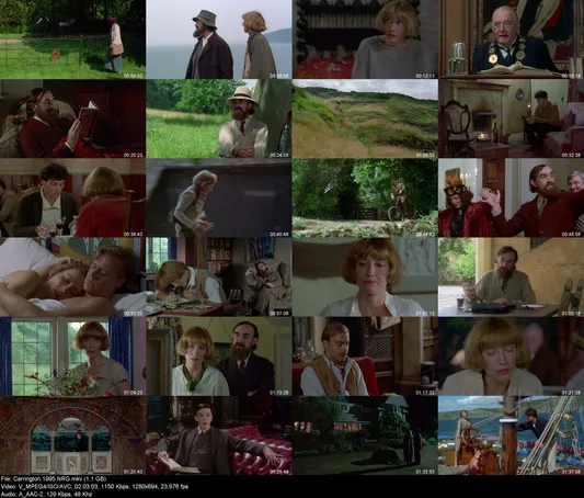 Description: Painter Dora Carrington develops an intimate but extremely complex bond with writer Lytton Strachey. Though Lytton is a homosexual, he is enchanted by the mysterious Dora and they begin a lifelong friendship that has strangely romantic undertones. Eventually, Lytton and Dora decide to live together, despite the fact that the latter has fallen in love with military man Ralph Partridge, whom she plans to marry.